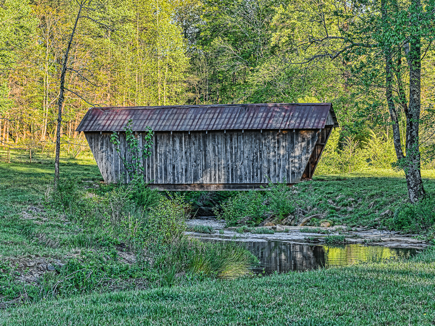 creek with covered bridge