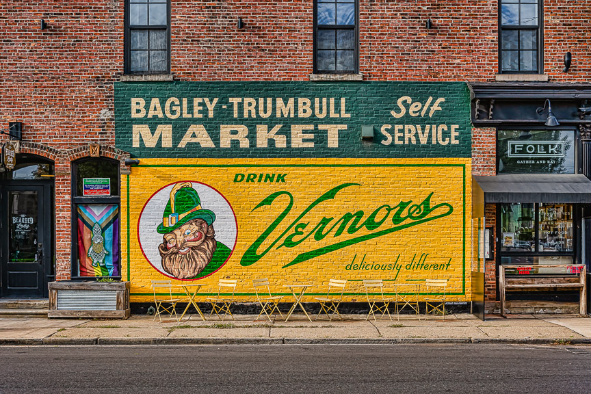 ghost sign for Vernors Ginger Ale